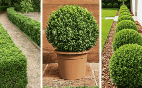 Dense, evergreen plants ideal for privacy, borders, and structured landscaping designs.